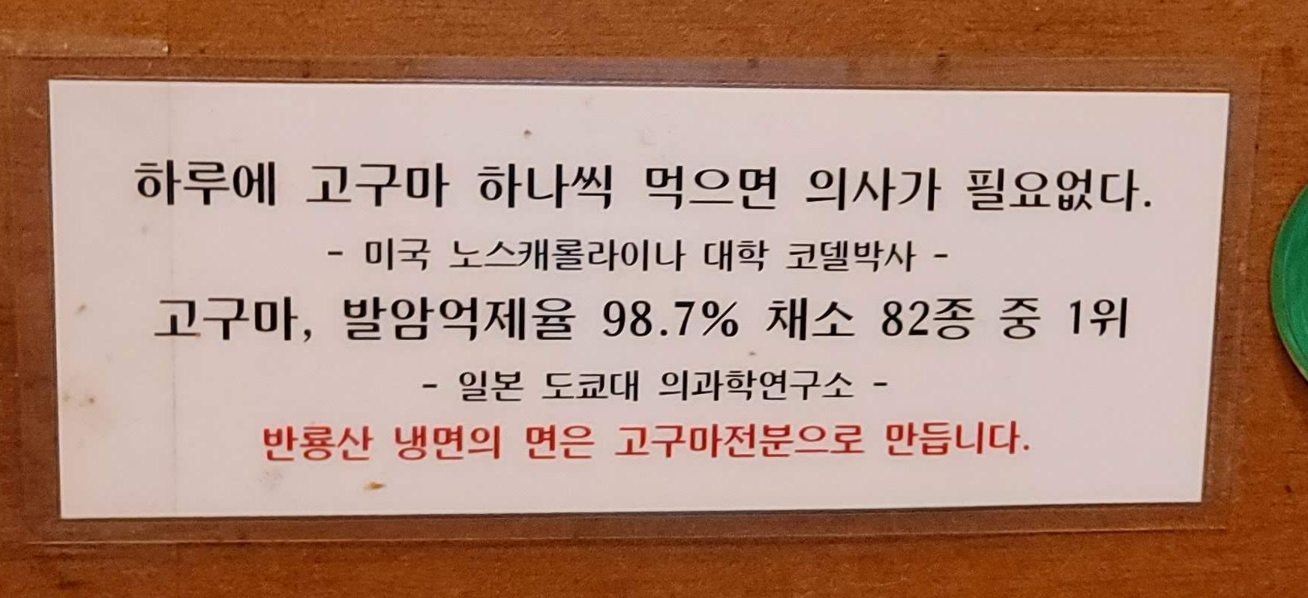 반룡산 냉면의 면은 고구마전분으로 만듭니다.