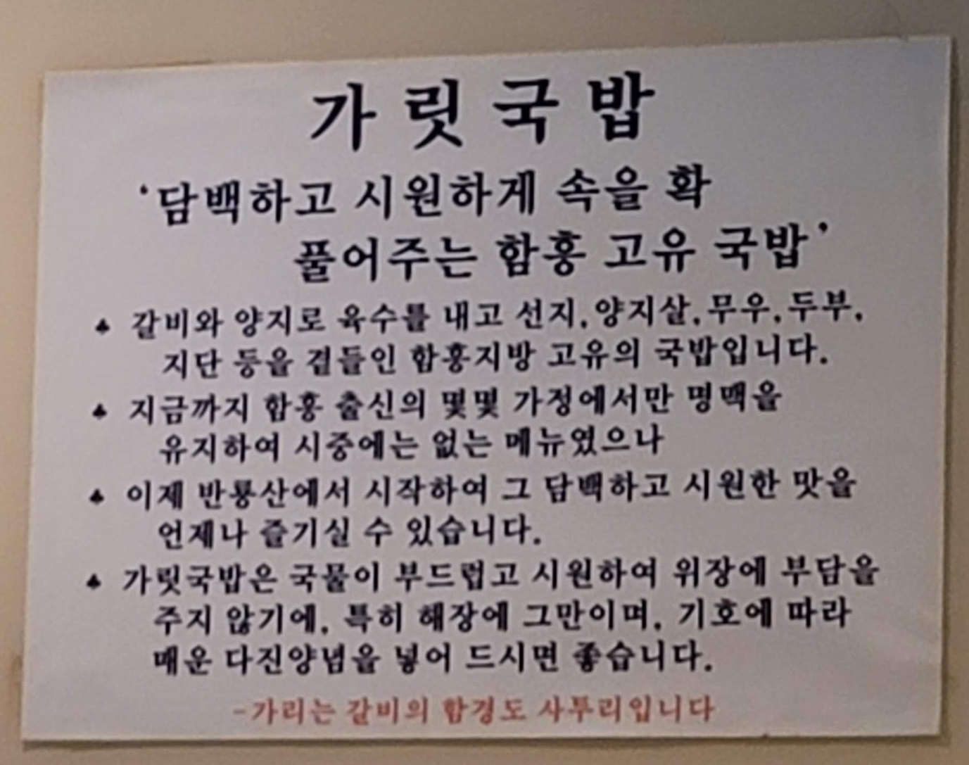 '담백하고 시원하게 속을 확 풀어주는 함흥 고유 국밥'