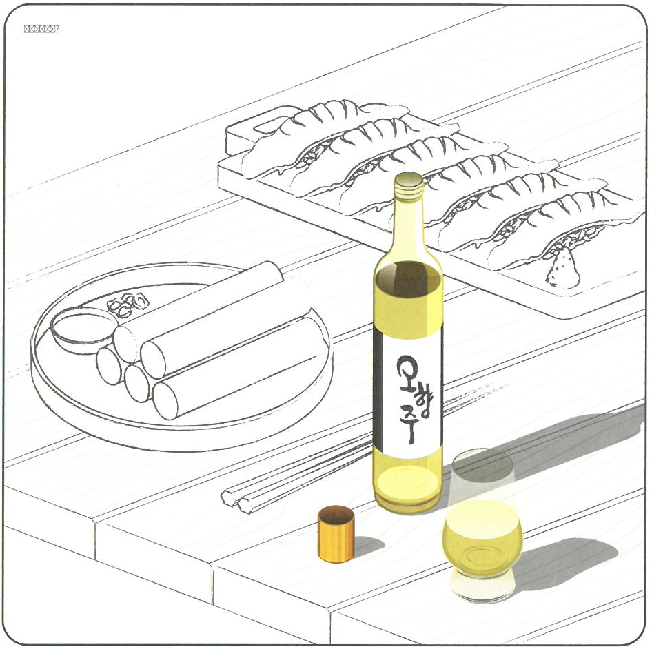 오향주는 다서 가지 맛(단맛,쓴맛,신맛,감칠맛,짠맛)이 조화를 이루기 때문에